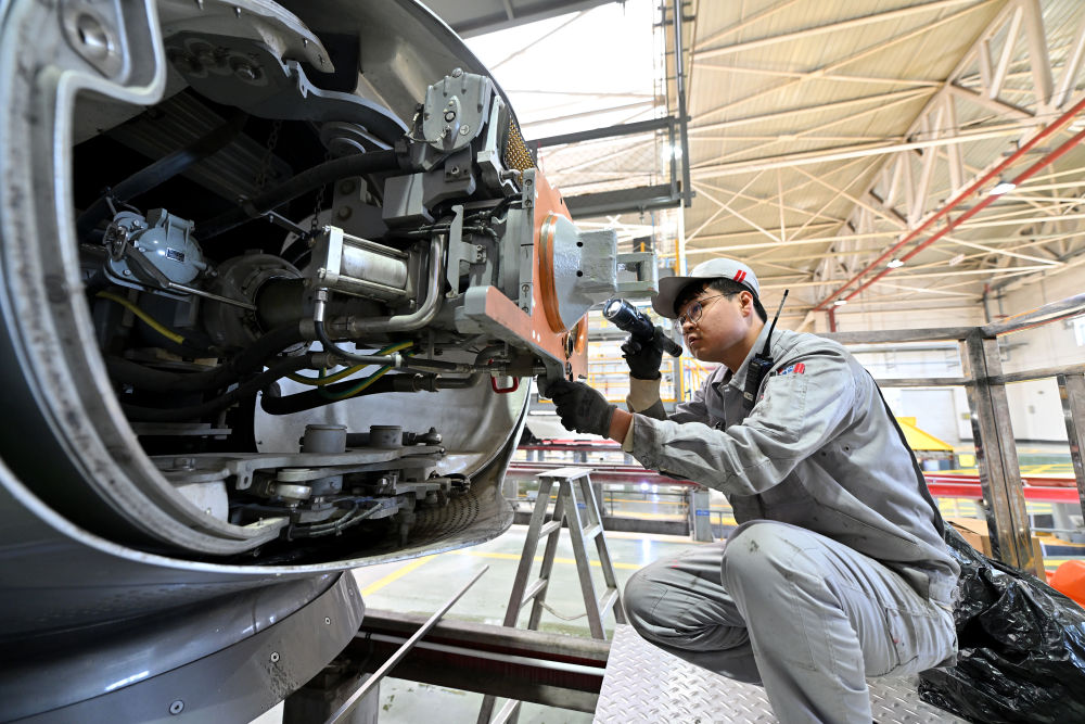 ■春運(yùn)在即,在中國鐵路太原局集團(tuán)有限公司太原車輛段太原動(dòng)車組運(yùn)用所,動(dòng)車“醫(yī)生”們對高鐵列車進(jìn)行檢修、維護(hù)、全方位排障,確保春運(yùn)期間列車運(yùn)行安全。
