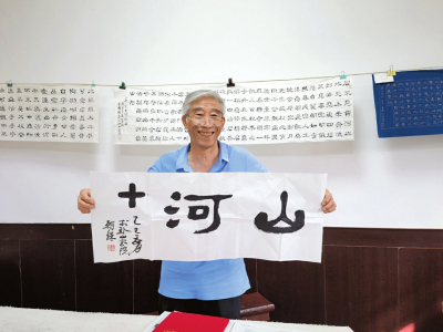 交城卦山書院有“山西姥爺”王朝珠的工作室,在墨香與花香中,山西晚報(bào)記者講起“山河+”客戶端的發(fā)展,說起2004年其兄長(zhǎng)王朝瑞先生贈(zèng)送墨寶的來歷,王朝珠老先生感嘆這份情意和緣分,便揮毫潑墨,接連寫下書法作品饋贈(zèng)山西晚報(bào)。特別是在“山河+鄰聚里”隸書中,加蓋了剛剛制印好的“山西姥爺”篆書印章,告訴記者“這枚印章還是第一次啟用咧?!?/p>