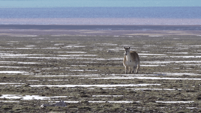 正在埋頭吃草的藏羚羊顯然對這只新來的“伙伴”充滿了好奇,紛紛停止覓食,抬起頭來,打量著這個有點不一樣的“新人”。很明顯,機(jī)警膽小的藏羚羊只是有點好奇,“新人”的“妝感”并沒有把它們嚇跑。終于,這只有點特殊的“藏羚羊”成功入群,成為卓乃湖畔成千上萬只藏羚羊中的一員。