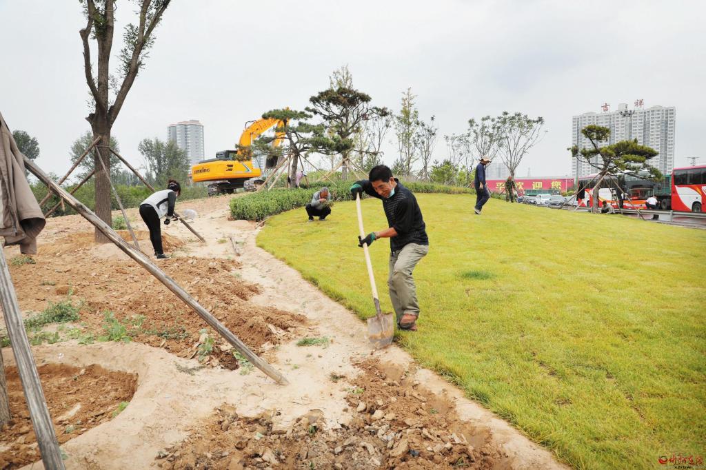 9月14日,原平市高速路口兩側(cè)的綠化工作正在如火如荼地進行著。挖掘機揮舞著鐵臂挖掘土壤,數(shù)十名工人忙碌著搬運花草,栽植樹木。據(jù)了解,該市今年綠化工程總投資1.3億元,對范亭廣場、原平經(jīng)濟技術(shù)開發(fā)區(qū)、高速路口兩側(cè)及新華廣場、崞紅線進行綠化提升改造,喬、灌、花、草合理組配,達到增層、增色、增花的效果。(褚 震 攝)