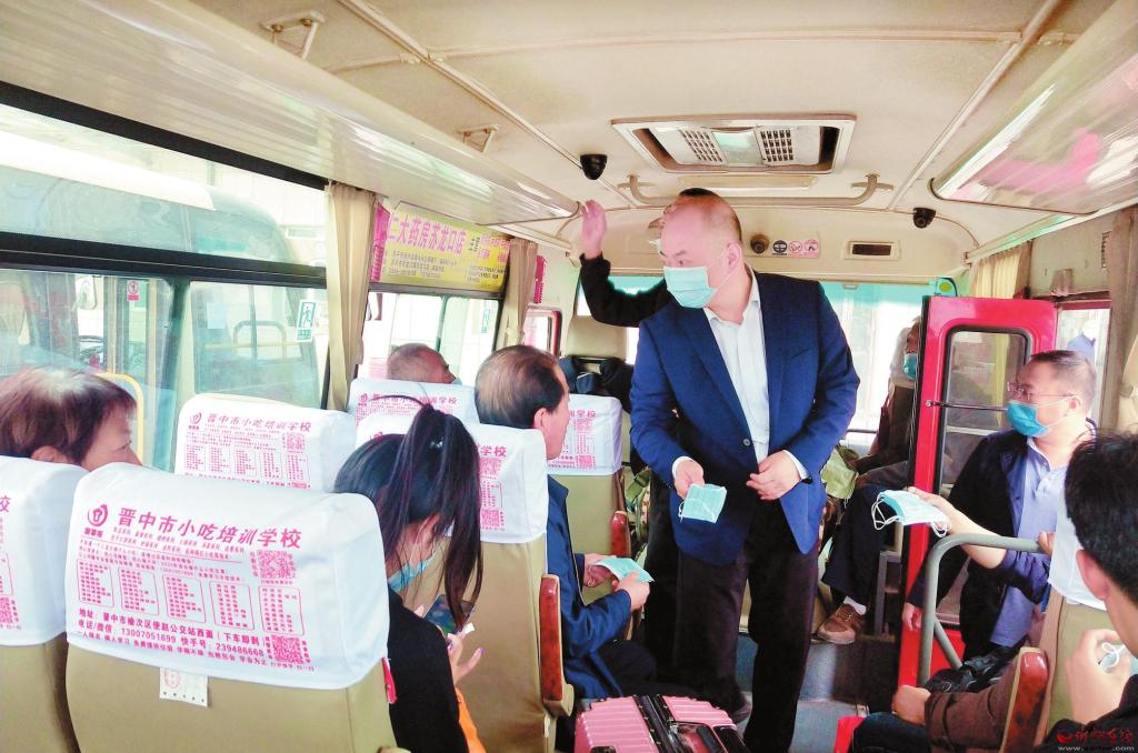 原平市交通運輸局加強對交通運輸企業(yè)、“兩客一危一貨”、旅游包車、網(wǎng)絡(luò)包車和重點路段的監(jiān)督檢查,嚴(yán)厲打擊“三超一疲勞”、非法載客、超員超限、疲勞駕駛和違規(guī)冒險行車等違法違規(guī)行為。在抓安全的同時,將疫情防控常態(tài)化,強調(diào)汽車站工作人員必須做好登記工作,督促乘客佩戴口罩。圖為工作人員在客車上為旅客發(fā)放口罩。( 劉建春 攝)