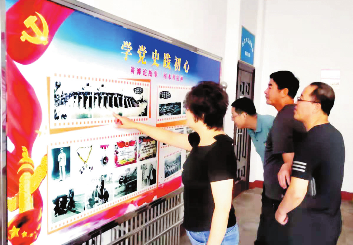 市滹沱河水利中心把黨史學習教育與“學黨史踐初心,講滹沱故事,樹水利精神”緊密結合,黨員們通過觀摩反映滹沱河水利人艱苦奮斗的展板,從中汲取不斷奮進的力量。 (馮 偉 攝)