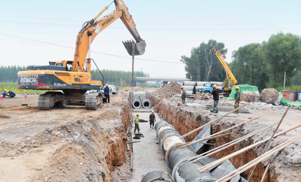 定襄縣把忻定大道建設(shè)作為全縣首要工作來(lái)抓,層層壓實(shí)責(zé)任,實(shí)行臺(tái)賬管理,確保項(xiàng)目順利推進(jìn)。圖為9月7日,忻定大道定襄段施工現(xiàn)場(chǎng),工人們正在加快進(jìn)度鋪設(shè)涵管。 (張玉虎 攝)