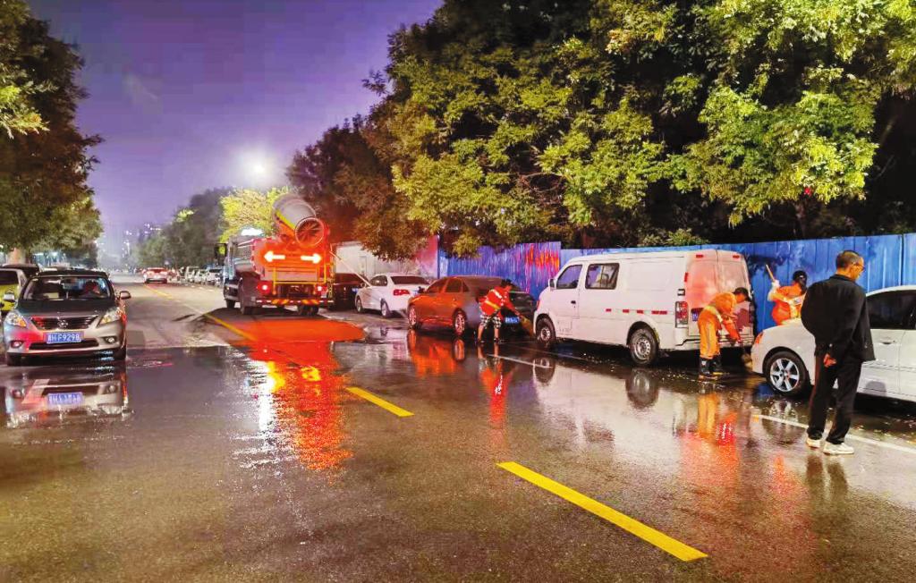 為進(jìn)一步美化城區(qū)環(huán)境,全面提高路面潔凈度,9月12日晚,市環(huán)衛(wèi)服務(wù)中心組織環(huán)衛(wèi)工人、環(huán)衛(wèi)高壓沖洗車,對和平街便民市場所在的安全巷進(jìn)行道路大清洗行動。