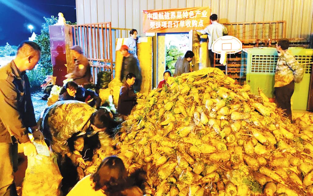 11月19日,神池縣西嶺村芥菜收購點(diǎn)一派繁忙景象。今年年初,在神池縣開展幫扶工作的中國航信集團(tuán)領(lǐng)導(dǎo)調(diào)研了解到,地處管涔山國家生態(tài)林保護(hù)區(qū)的西嶺村芥菜種植收益高,決定出資在西嶺村打造華北海拔最高的蔬菜種植基地。他們扶持該村成立了芥菜種植專業(yè)合作社,聯(lián)系加工企業(yè)與農(nóng)民簽訂訂單收購協(xié)議,并提供技術(shù)支持和種植補(bǔ)貼,還給種菜戶購買了種植保險(xiǎn)。今年西嶺村的1000畝芥菜獲得大豐收,畝產(chǎn)達(dá)到6000斤,全村157戶農(nóng)戶戶均增收1萬元,真正把小芥菜做成了農(nóng)民致富的大產(chǎn)業(yè)。(鄭志東 攝)