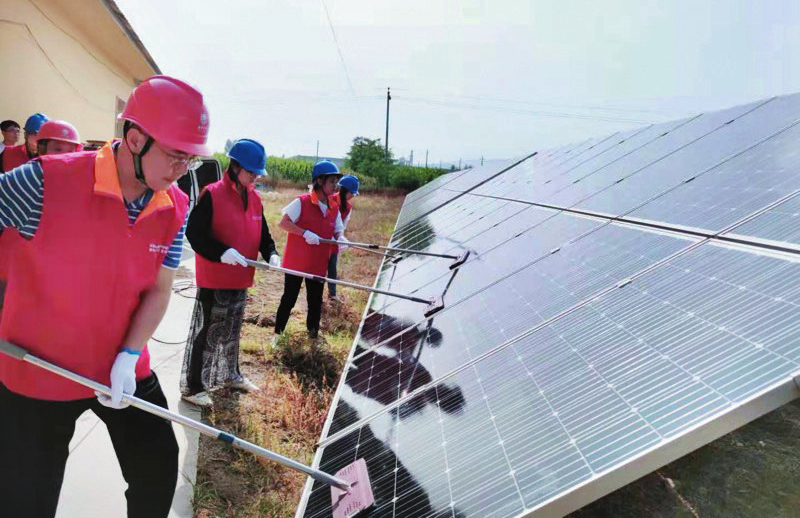 隱患排查完畢后,黨員服務(wù)隊配合光伏運維管理單位的工作人員,細(xì)致地對每一塊光伏板表面的污垢進(jìn)行了清理,以提高光伏板的發(fā)電效率,為推進(jìn)“雙碳”目標(biāo)貢獻(xiàn)力量。(記者 王 晟)