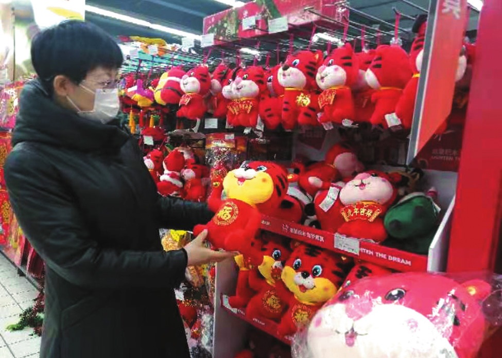 農(nóng)歷虎年春節(jié)將至,各類含有“虎元素”的商品已經(jīng)開始走俏市場。近日,記者在忻州城區(qū)各大商城超市發(fā)現(xiàn),不少商品上都出現(xiàn)了“虎元素”,商家將其放在醒目位置,吸引了眾多消費者駐足選購,整個市場洋溢著喜慶祥和的節(jié)日氣氛。(記者 李 濤 攝影報道)