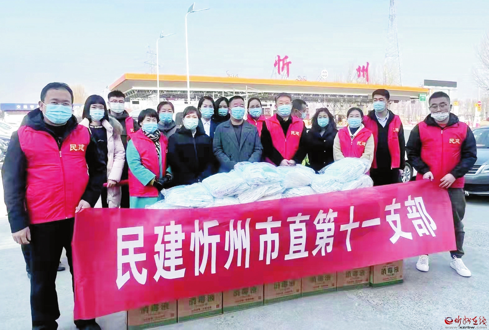 2月25日,民建忻州市委會(huì)攜同會(huì)員企業(yè)忻州市五洲手機(jī)大賣場(chǎng)對(duì)山西交控忻州南高速忻州收費(fèi)站全體員工進(jìn)行慰問,并捐贈(zèng)酒精300斤、口罩5000個(gè)。 (李瑞軍 攝)
