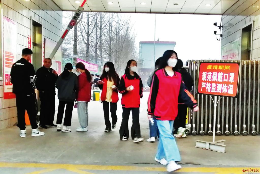 規(guī)范佩戴口罩,嚴(yán)格監(jiān)測(cè)體溫。忻州市高級(jí)技術(shù)學(xué)校門口豎著一塊醒目的牌子,溫馨提示學(xué)校師生要做好疫情防護(hù)。 (記者 李 濤攝)