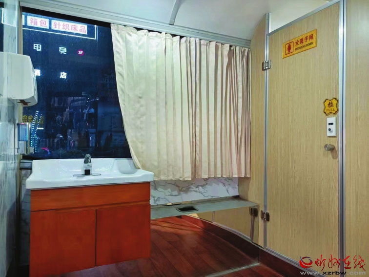 據(jù)了解,該移動公廁還可根據(jù)需要,隨時移動到別的地方繼續(xù)使用,是我市夜間經(jīng)濟(jì)重要的“文明窗口”?!斑@座公廁不僅裝修大方,而且設(shè)施齊全,干凈衛(wèi)生,男女廁的數(shù)量進(jìn)行了科學(xué)調(diào)配,非常人性化?!痹谝故泄浣值睦钆空f?!拔覀兠刻鞄缀醵家谝故泄ぷ魑辶鶄€小時,沒有公廁時很不方便,大家水也不敢多喝。這個移動公廁太及時了?!币故袛傊骼像R開心地說。
