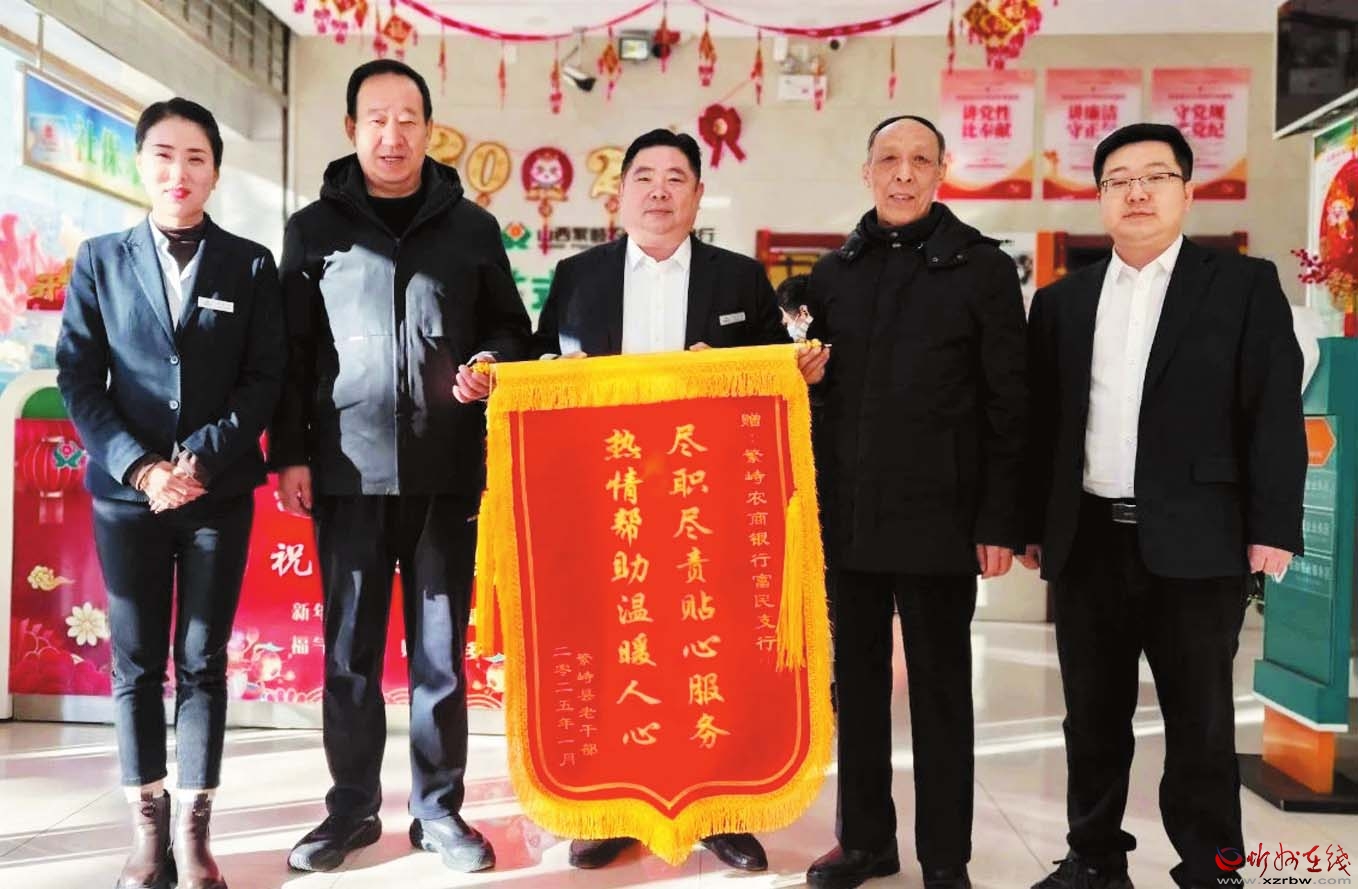 “咱農商銀行的服務真是太好了!”近日,一位老干部將一面寫有“盡職盡責貼心服務 熱情幫助溫暖人心”的錦旗,送到了繁峙農商銀行富民支行。在首季“開門紅”期間,該行工作人員以專業(yè)的素養(yǎng)和熱情的態(tài)度,為客戶提供了暖心服務,贏得了客戶的好評,樹立了農商行的良好社會形象。(郭凱文攝)
