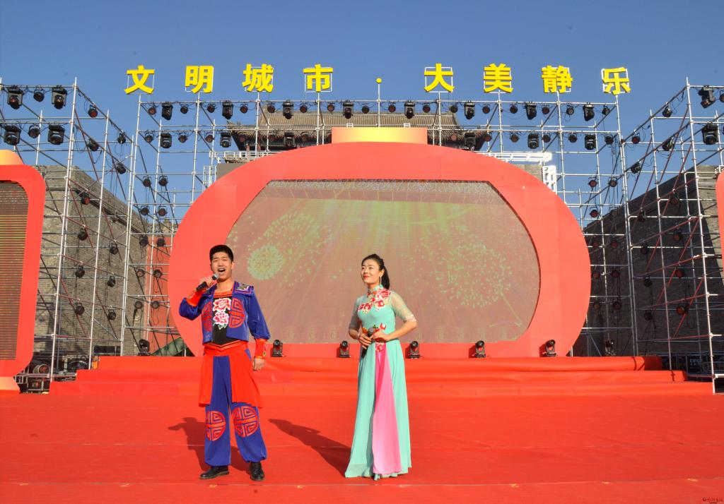 在北城門樓廣場的歌舞現(xiàn)場,二人臺對唱《拜大年》、歌曲《復(fù)興的力量》《牽著春風(fēng)進(jìn)山村》、舞蹈《幸福中國一起走》、北路梆子《黃河管子聲》選段等精彩的節(jié)目陸續(xù)登臺,贏得廣大市民朋友的陣陣掌聲。