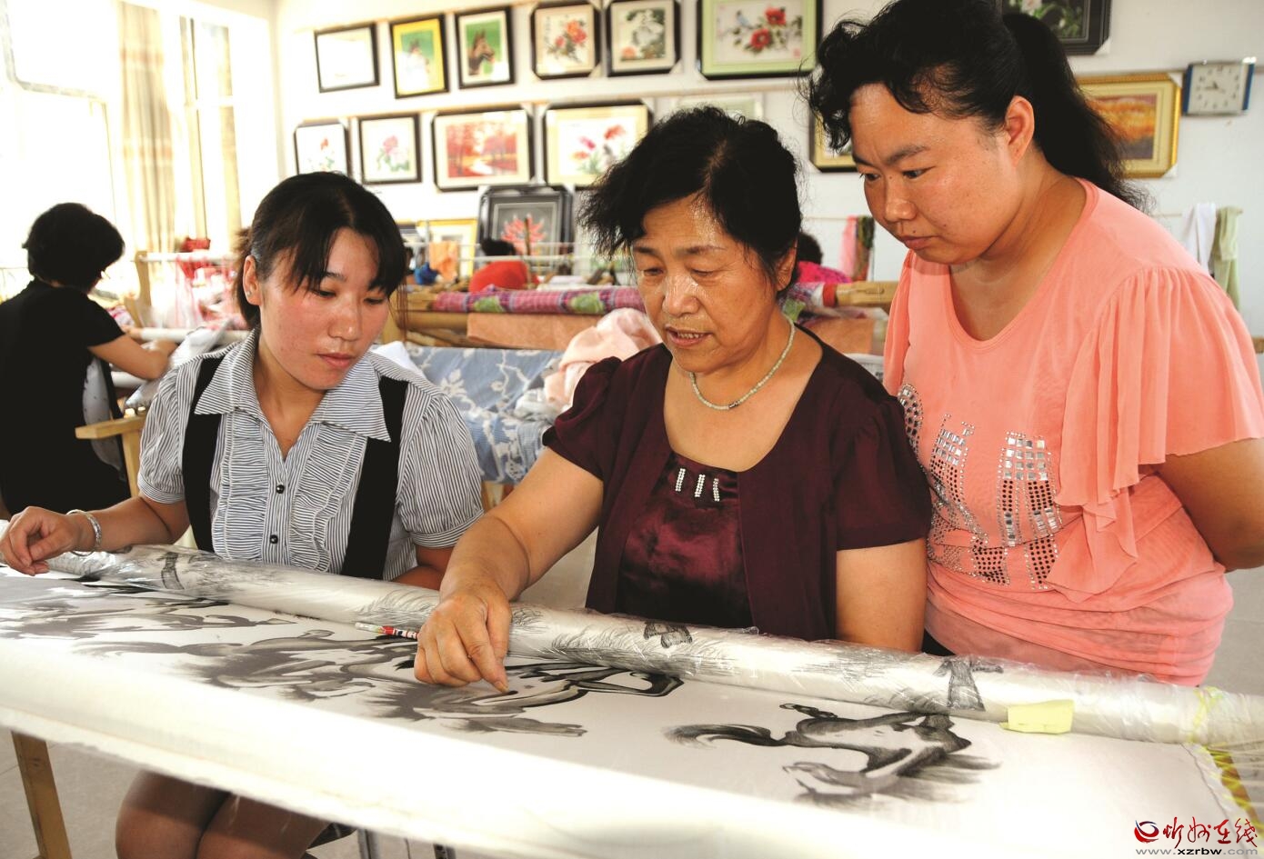 代縣易地扶貧移民小區(qū)婦女們正在參加刺繡技藝培訓。石俊文 攝