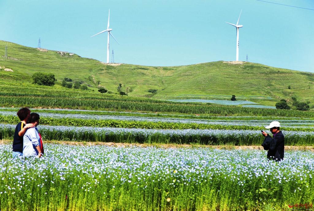 近年來,神池縣加大對胡麻種植戶的補貼力度,每畝補貼260元,在胡麻品質(zhì)最優(yōu)的烈堡鄉(xiāng)種植1.6萬畝,打造了970畝有機旱作胡麻種植示范基地。每年6月下旬至7月下旬,烈堡鄉(xiāng)解家?guī)X到長城寨沿線的胡麻花盛開,藍色花海與沿線的長城交相輝映,組成一幅動人的美景畫。烈堡鄉(xiāng)鄉(xiāng)長趙崢嶸介紹,當?shù)卣谔剿鳜F(xiàn)代農(nóng)業(yè)發(fā)展新路徑,通過“胡麻產(chǎn)業(yè)+旅游”的方式,吸引更多游客,使胡麻成為帶動鄉(xiāng)村振興的重要引擎。