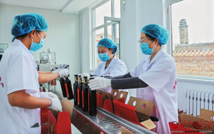脫貧勞動力正在幫扶車間里包裝產(chǎn)品。 本報通訊員攝