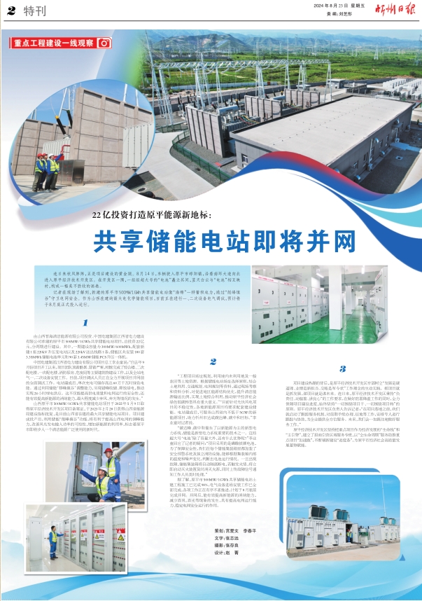 記者在現(xiàn)場(chǎng)了解到,新建的原平市500MW/1GWh共享儲(chǔ)能電站像“海綿”一樣蓄積電力,通過“削峰填谷”守衛(wèi)電網(wǎng)安全。作為山西在建的最大電化學(xué)儲(chǔ)能項(xiàng)目,目前正在進(jìn)行一、二次設(shè)備電氣調(diào)試,預(yù)計(jì)將于8月底正式投入運(yùn)行。