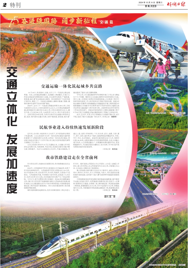 2024年,全市三個一號旅游公路建設(shè)里程為253公里,目標完成投資16.8億元,目前完成投資16.4億元,已實現(xiàn)全線建成貫通;新改建農(nóng)村公路目標為445公里,目標完成投資10億元,截至目前,已完成390公里,完成投資7.9億元,預(yù)計年底全部完工。這些目標任務(wù)的實現(xiàn),為我市實現(xiàn)鄉(xiāng)村全面振興和加快交通、旅游、現(xiàn)代服務(wù)業(yè)融合發(fā)展,加快“城景通、景景通、城鄉(xiāng)通”建設(shè)提供了強有力的支撐和保障。