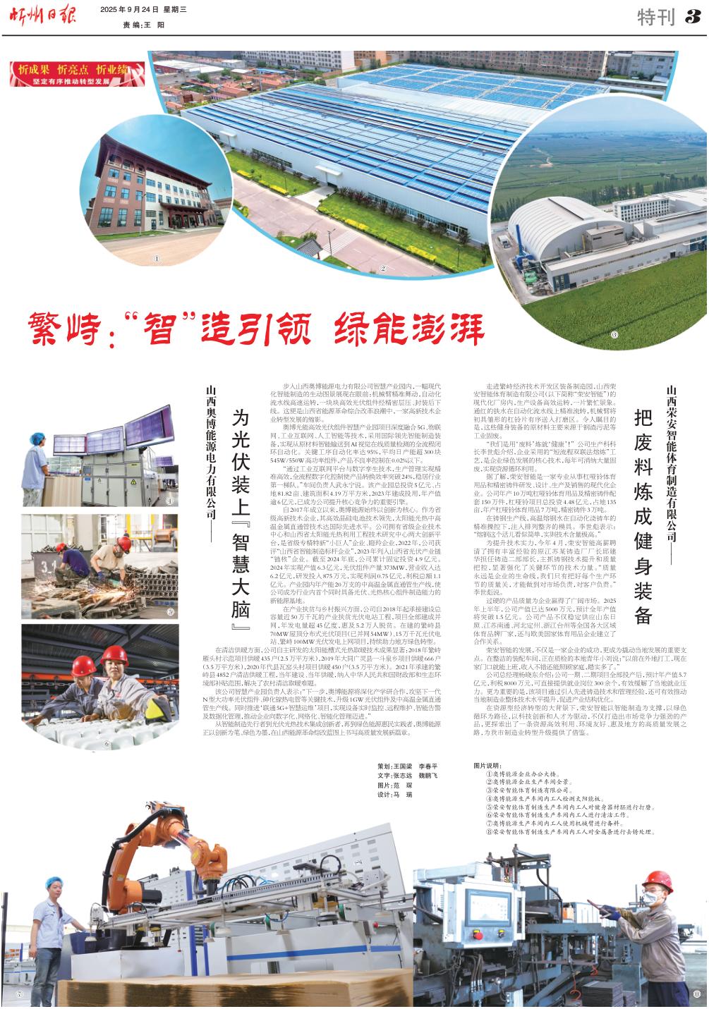 從智能制造先行者到光伏光熱技術集成創(chuàng)新者,再到綠色能源惠民實踐者,奧博能源正以創(chuàng)新為筆、綠色為墨,在山西能源革命綜改藍圖上書寫高質量發(fā)展新篇章。