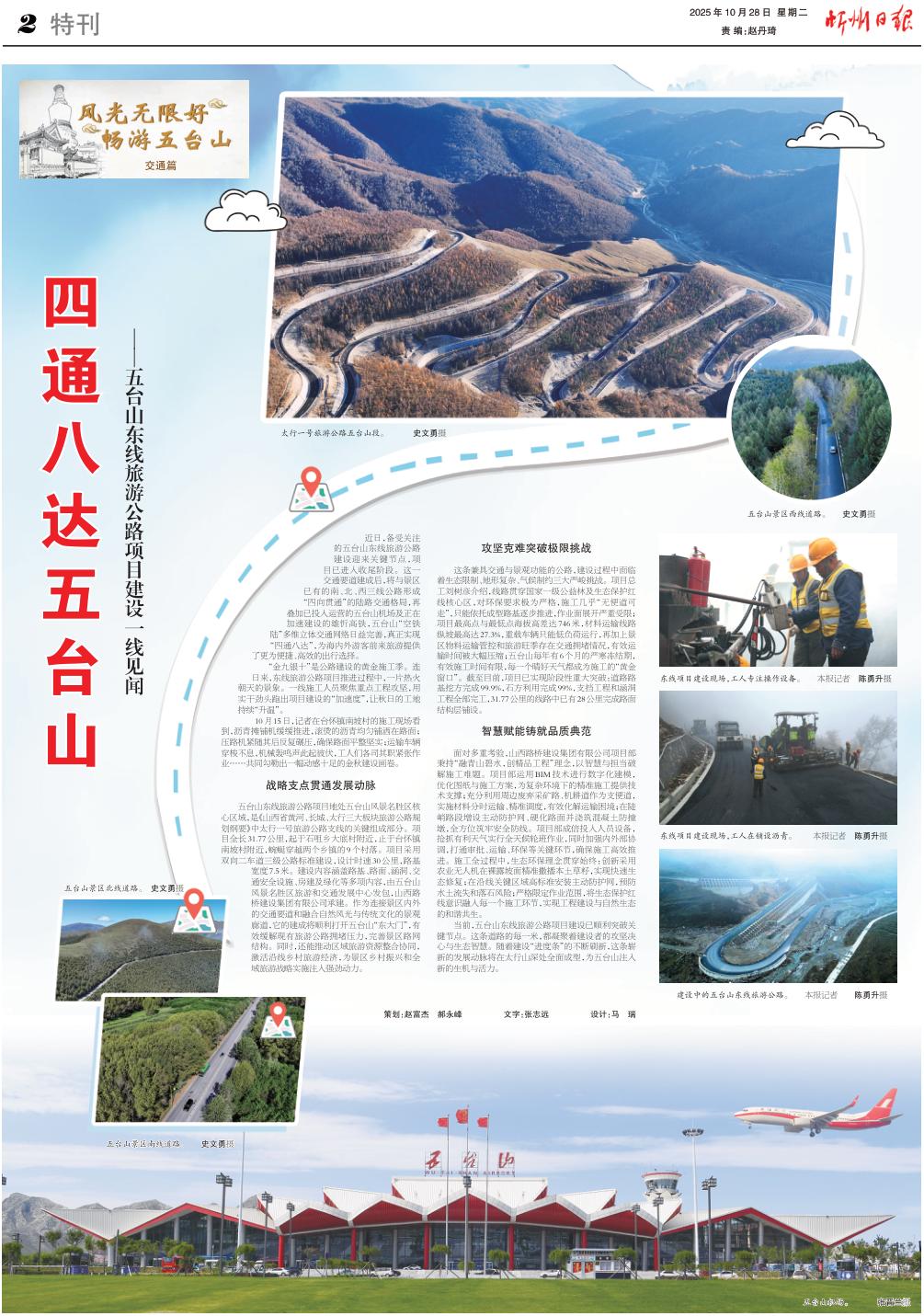 近日,備受關(guān)注的五臺山東線旅游公路建設(shè)迎來關(guān)鍵節(jié)點,項目已進入收尾階段。這一交通要道建成后,將與景區(qū)已有的南、北、西三線公路形成“四向貫通”的陸路交通格局,再疊加已投入運營的五臺山機場及正在加速建設(shè)的雄忻高鐵,五臺山“空鐵陸”多維立體交通網(wǎng)絡(luò)日益完善,真正實現(xiàn)“四通八達”,為海內(nèi)外游客前來旅游提供了更為便捷、高效的出行選擇。