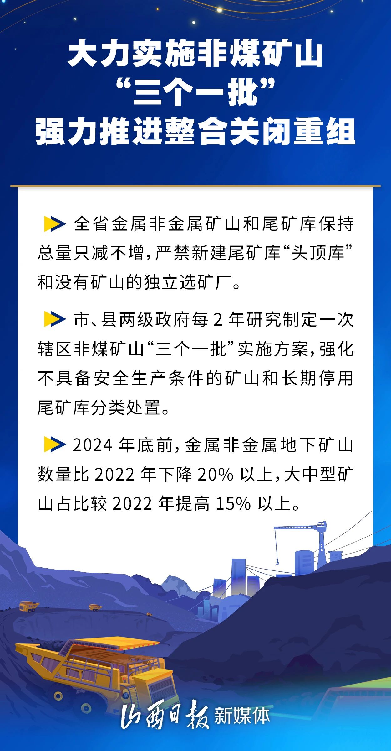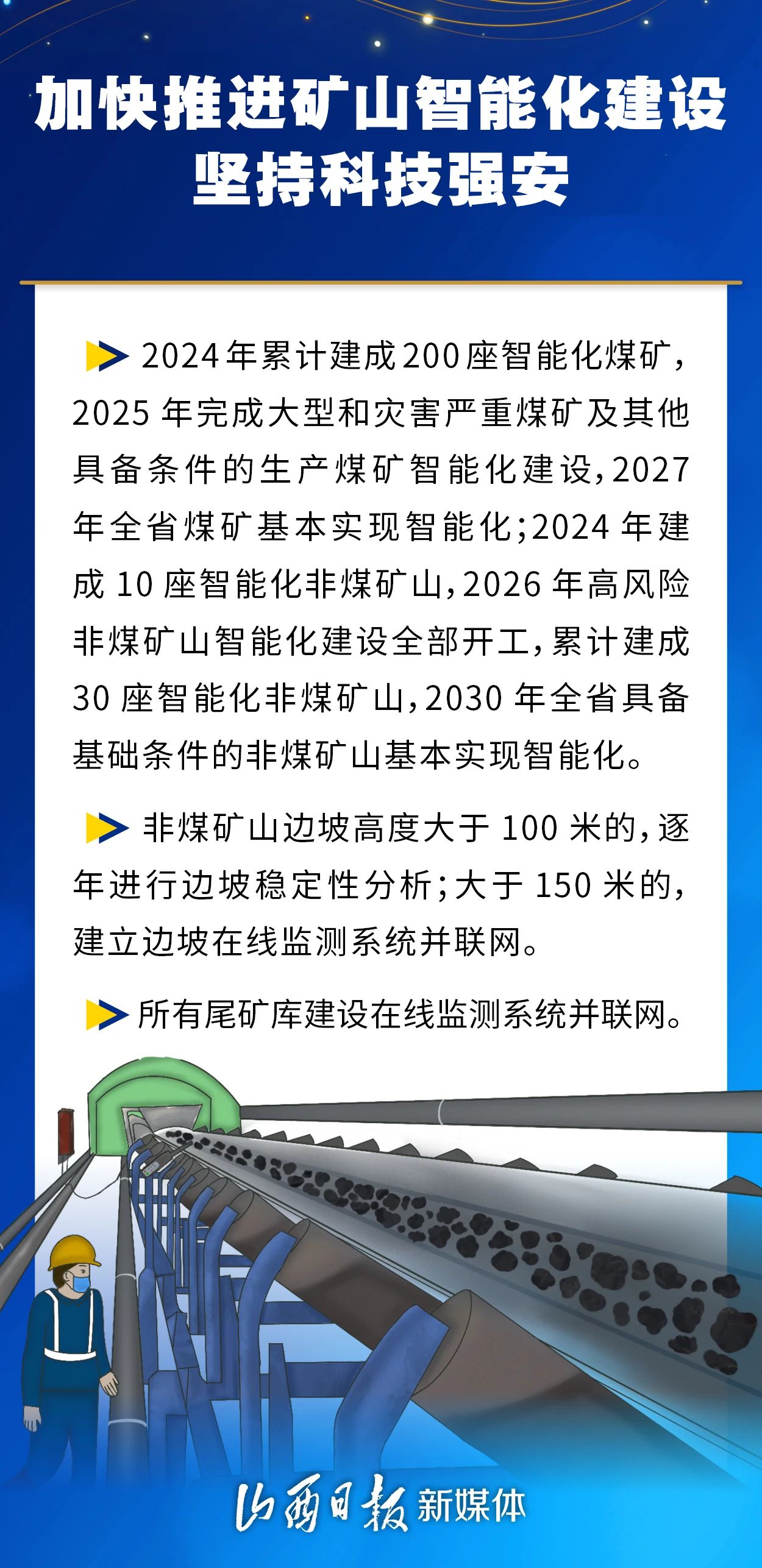 近日,省委、省政府印發(fā)《山西省進一步加強礦山安全生產(chǎn)工作措施》,為全面提升礦山安全保障能力,加快發(fā)展礦山新質(zhì)生產(chǎn)力,持續(xù)推動山西礦山高質(zhì)量轉(zhuǎn)型發(fā)展,我省將重點在以下幾個方面優(yōu)化協(xié)同、強基固本、蓄勢賦能。
