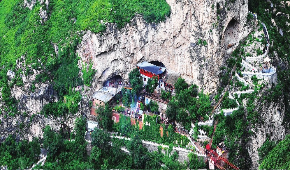 明代《忻州志》記載:“仙人洞,在福田寺左,相傳通平山縣,產(chǎn)瑪瑙?!边@段記載揭示了另一個秘密——洞穴可能通往河北平山縣。1992年開發(fā)時探明深度已達2000余米,但實際長度仍是未解之謎。洞內(nèi)恒溫在8-11℃之間,形成“盛夏涼風習習,寒冬溫暖如春”的獨特微氣候。當游客沿著依巖而建的“天梯”或乘坐索道抵達洞口時,便踏入了一個四季恒常的時空膠囊。
