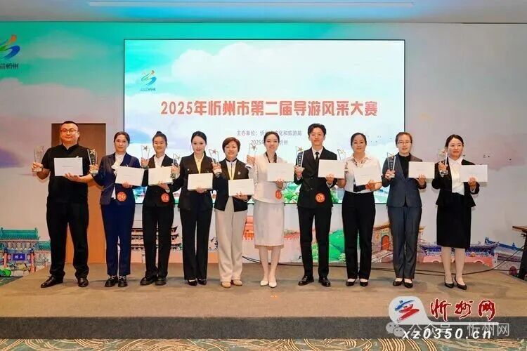 經過專業(yè)評委團綜合評審,最終評選出一等獎1名、二等獎2名、三等獎3名,優(yōu)秀獎4名,10位獲獎選手被授予“2025年忻州市十佳文旅推介官”稱號并受聘為文旅代言人。