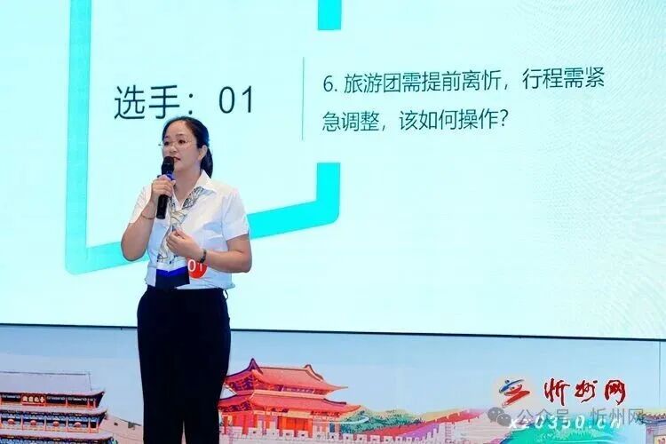 決賽現場亮點紛呈,選手們以生動語言勾勒忻州文旅全景:有的以 “行走‘忻’長城” 為主題,串聯偏關老牛灣、代州邊靖樓的邊塞傳奇;有的聚焦 “探訪‘忻’建筑”,解讀應縣木塔的營造技藝與佛光寺的千年底蘊;還有的通過 “自在‘忻’生活” 主題,將寧武毛健茶、忻府區(qū)面塑等非遺元素融入講解,讓觀眾沉浸式感受地域文化魅力。在模擬帶團環(huán)節(jié),選手們針對 “游客突發(fā)不適”“行程臨時調整” 等真實場景快速響應,展現出扎實的職業(yè)素養(yǎng)與應變能力。