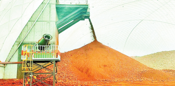 4月15日,4號氣膜倉內(nèi)正在進行自動化礦石倒運作業(yè),同步開啟霧炮機降塵。 高舒軍攝