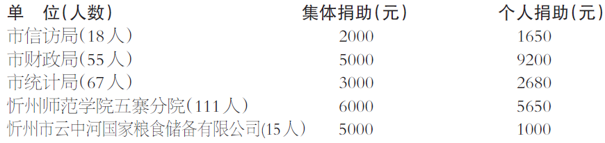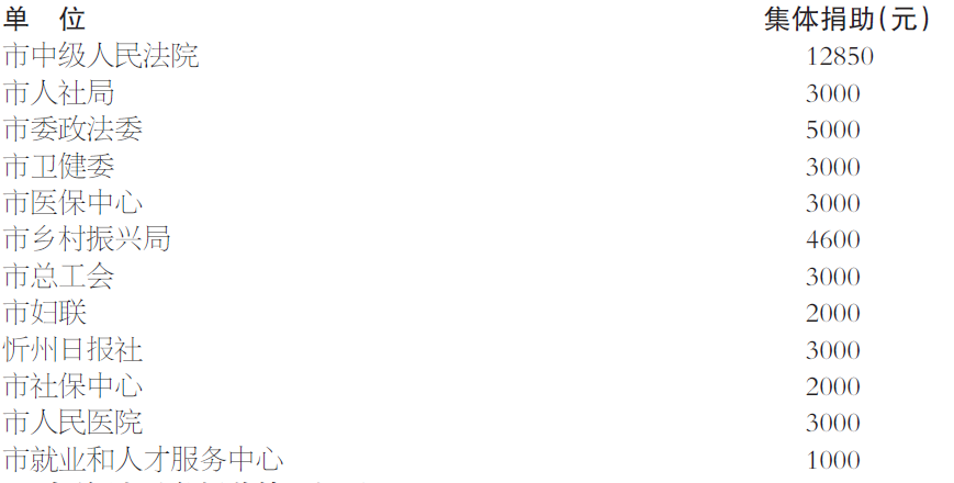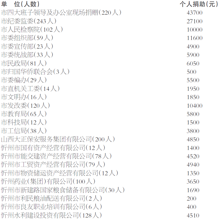 2023年11月10日,市委、市政府辦公室發(fā)出《關(guān)于開展“送溫暖、獻(xiàn)愛心”社會捐助活動的通知》,市四大班子領(lǐng)導(dǎo)和機關(guān)率先垂范,各縣(市、區(qū))、各單位高度重視,認(rèn)真組織,廣大干部職工積極響應(yīng),“送溫暖、獻(xiàn)愛心”社會捐助活動有效開展。截至2024年4月底,市直133個單位組織干部職工參與捐助,共捐款83.37萬元,各縣(市、區(qū))接收捐款365.92萬元,合計捐款449.29萬元,為解決我市困難群眾的基本生活問題起到了積極作用?,F(xiàn)將捐助情況公告如下(市直單位以捐助時間先后為序):