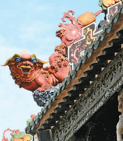 43層“龍鳳呈祥”象牙球 在廣州地鐵一號線上,有一站叫“陳家祠”。從地鐵站出來走不遠(yuǎn),便可看到一座屋脊上布滿精美雕刻的傳統(tǒng)建筑。陳家祠落成于清光緒十九年(1893年),是廣東各地陳氏宗族合資捐建的合族祠,又稱“陳氏書院”。陳家祠集廣東民間建筑裝飾藝術(shù)之大成,被譽為“嶺南建筑藝術(shù)明珠”,郭沫若曾賦詩贊其“天工人可代,人工天不如”。 這座久負(fù)盛名的百年古建筑,現(xiàn)為廣東民間工藝博物館所在地。博物館收藏各類珍貴文物與現(xiàn)代工藝精品2萬多件(套),設(shè)有11個展廳,向觀眾展示嶺南傳統(tǒng)建筑藝術(shù)和豐富多彩的民間工藝。 建筑藝術(shù)中西合璧 陳家祠是廣東現(xiàn)存規(guī)模最大、保存完好的傳統(tǒng)嶺南祠堂式建筑,總面積1.5萬平方米,主體建筑面積6400平方米,由19座單體建筑組成,呈三路三進、兩廡九廳堂式布局。整個建筑群長廊相連,庭院穿插,廳堂軒昂,園林秀美,處處細(xì)節(jié)體現(xiàn)出匠心。 來到“陳氏書院”正門,兩扇高大的黑漆木門上,繪制著兩個4米高的門神,這是廣東地區(qū)現(xiàn)存最大的彩繪門神,格外威嚴(yán)氣派。 跨過門檻,迎面隔擋外部視線的屏門上雕刻著精美的圖案。湊近細(xì)看,每一幅圖案都生動有趣,蘊涵寓意。大芭蕉象征家大業(yè)大,芭蕉樹下一只母雞帶著7只小雞覓食,象征兒孫昌盛。蒼勁的老竹盤繞成“?!弊郑纬伞白8D”(諧音“竹福”),下方還有兩棵小竹筍,象征后代如雨后春筍般蓬勃發(fā)展?!瓣惣异舻慕ㄖb飾中大量采用吉祥圖案、神話傳說和歷史故事題材,表達祈求興旺吉祥的美好愿望,洋溢著濃郁的民間文化氣息?!睆V東民間工藝博物館高級講解員曾翔說。 廣州是海上絲綢之路起點,自古以來是對外貿(mào)易重鎮(zhèn)。頻繁的貿(mào)易交往孕育了廣東開放包容的氣質(zhì),也影響了建筑藝術(shù)發(fā)展。陳家祠有不少建筑裝飾反映出當(dāng)時中西文化的交流。 在首進東廳北面墀頭上,刻著一處別致的磚雕——兩個扎著發(fā)髻、穿著肚兜的小天使左右對望?!八鼘⑽鞣叫√焓古c中國年畫中的‘福娃’造型融為一體,頗具創(chuàng)意?!痹枵f。連廊和月臺運用了西方園林常見的鐵鑄工藝,配以中式傳統(tǒng)雕花圖案,中西合璧,相映成趣。 “三雕兩塑”(石雕、木雕、磚雕、陶塑、灰塑)是嶺南傳統(tǒng)建筑常用構(gòu)件。陳家祠建筑屋頂上裝飾著層疊錯落、精致繁復(fù)的陶塑和灰塑,堪稱一大亮點。曾翔介紹,最頂層的陶塑瓦脊就是著名的“石灣陶”,在廣東佛山石灣鎮(zhèn)燒制而成,內(nèi)容一般以粵劇故事、花卉和吉祥圖案為主。瓦脊下方的基座是灰塑?;宜艿闹谱鞴に嚤容^特別,用石灰摻入糖膠、稻草、糯米等混合發(fā)酵后,往房頂?shù)你~鐵骨架上填抹塑形,再涂上顏色?;宜軟]有經(jīng)過高溫?zé)?,容易受風(fēng)雨侵蝕而剝落掉色,每隔五六年就要進行保養(yǎng)修復(fù)。 為了讓觀眾近距離感受嶺南傳統(tǒng)建筑的魅力,廣東民間工藝博物館常設(shè)“嶺南傳統(tǒng)建筑裝飾”展。展廳中有來自潮陽梅祖家祠的石雕,在一整塊堅硬的青石上雕出三段圖案組成的花籃,其中最纖細(xì)的“拉豬繩”寬度僅3-4毫米,令人嘆為觀止。 民間工藝爭奇斗巧 走進陳家祠中進主廳聚賢堂,寬敞的廳堂里還原了當(dāng)年陳氏宗族聚會議事時的擺設(shè)。聚賢堂兩側(cè)展柜陳列了多件館藏珍品,其中兩座木雕神亭格外抓人眼球。神亭是民間舉辦迎神賽會活動時安放神像或牌位的器具。“這兩件都是國家級珍貴文物?!痹杞榻B,深色的刻龍紋大神亭由清代廣州地區(qū)的木雕藝人打造,它看上去低調(diào),實際上做工非常考究,用材十分豐富。神亭選用烏木、影木、酸枝等名貴木材,臺階外用云石、內(nèi)用漢白玉,屋頂瓦片是螺鈿,屏門、柁墩是象牙,側(cè)面還裝上了從西洋進口的套色玻璃。 另一件金漆木雕大神亭是民國時期作品,采用潮汕地區(qū)特有的金漆木雕工藝:先把木頭雕刻好,在木雕上刷大漆,再利用漆的黏性貼上金箔。神亭上精雕細(xì)刻各種人物、動物、花卉等圖案,金光熠熠,華麗動人。神亭中部樓閣牌匾上刻有“海國慈航”,據(jù)推測應(yīng)為媽祖誕時游神所用。 在常設(shè)陳列“嶺南民間百藝”展廳,可以看到更多巧奪天工的工藝品。象牙雕刻是廣州地區(qū)富有特色的一項傳統(tǒng)工藝,多層象牙球則是最能代表廣州象牙鏤雕技藝的作品。“這個象牙球有43層?!痹柚钢患赖褡髌氛f,“它是將一塊完整的象牙鏤空為層層相套的球體,每一層都可以獨立轉(zhuǎn)動,球面上還有精細(xì)雕花。”早在宋代就有制作象牙球的記載,如今,象牙球最多已做到57層。 象牙球旁邊放著象牙微雕工藝創(chuàng)始人馮公俠雕刻的屈原《九歌》。拇指大的小座屏上刻有1700余字,肉眼看是密密麻麻的黑點,置于放大鏡下,可以看見每個字筆畫清晰工整。 一把嘉慶年間的象牙鏤絲人物徽章紋折扇,體現(xiàn)了清代象牙扇制作技藝的巔峰水平。折扇共21片,通體鏤空雕刻54個古裝人物及花卉紋飾等,沒有雕刻圖案的鏤空處全用垂直象牙絲填充,牙絲細(xì)如毛發(fā),一觸即斷,在它們的映襯下,主體圖案看上去仿佛懸浮于空中?!跋笱郎鹊裙に嚻吩峭怃N西方的搶手貨,不少歐洲貴族都以擁有這些來自東方的‘高級定制’作為身份的象征?!痹枵f。 艷麗奪目的