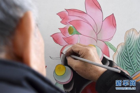 霍慶順在為年畫上色(1月16日攝)。 新華社記者 宋瑞 攝