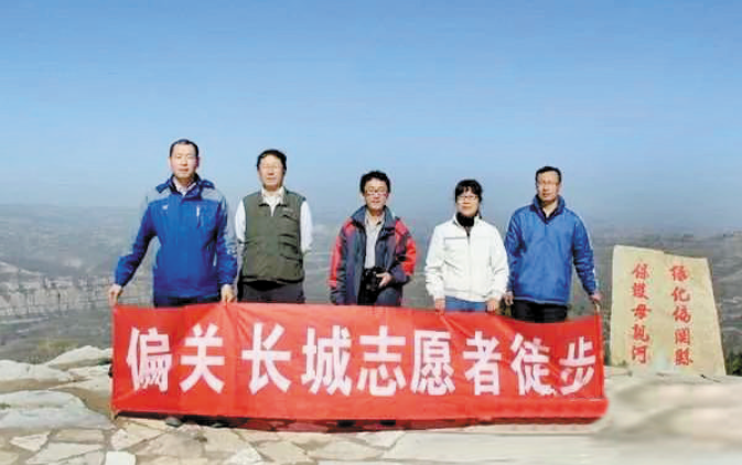 賀文(右二)與長城愛好者考察晉蒙長城分界碑