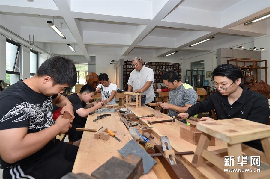 8月25日,在天津職業(yè)大學(xué)辛全生大師木藝工作室,辛全生在指導(dǎo)他的徒弟們。新華社發(fā)(孫凡越 攝)