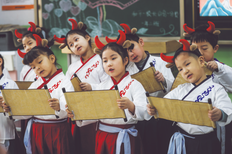 3月1日,全國(guó)多地中小學(xué)開學(xué)。學(xué)生們?cè)谛问蕉鄻拥拈_學(xué)第一課中迎來(lái)了新的學(xué)期。圖為遼寧省沈陽(yáng)市和平一校長(zhǎng)白島一分校1年級(jí)2班的學(xué)生在上開學(xué)第一課,學(xué)生代表進(jìn)行了傳統(tǒng)文化節(jié)目表演。 新華社記者 潘昱龍 攝