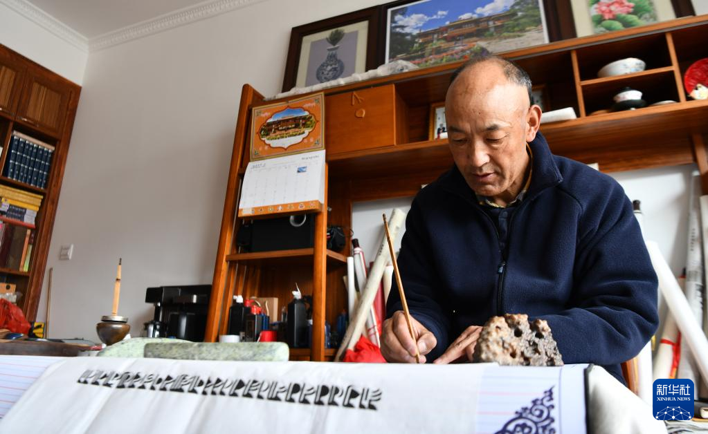 完成貝葉經(jīng)普查和修復(fù)工作后,久米次成仍躬耕古籍修復(fù)事業(yè),堅持不懈完成了多部藏文文獻(xiàn)的修繕普查任務(wù)。2017年,久米次成入選第一批“西藏工匠”。新華社記者 晉美多吉 攝