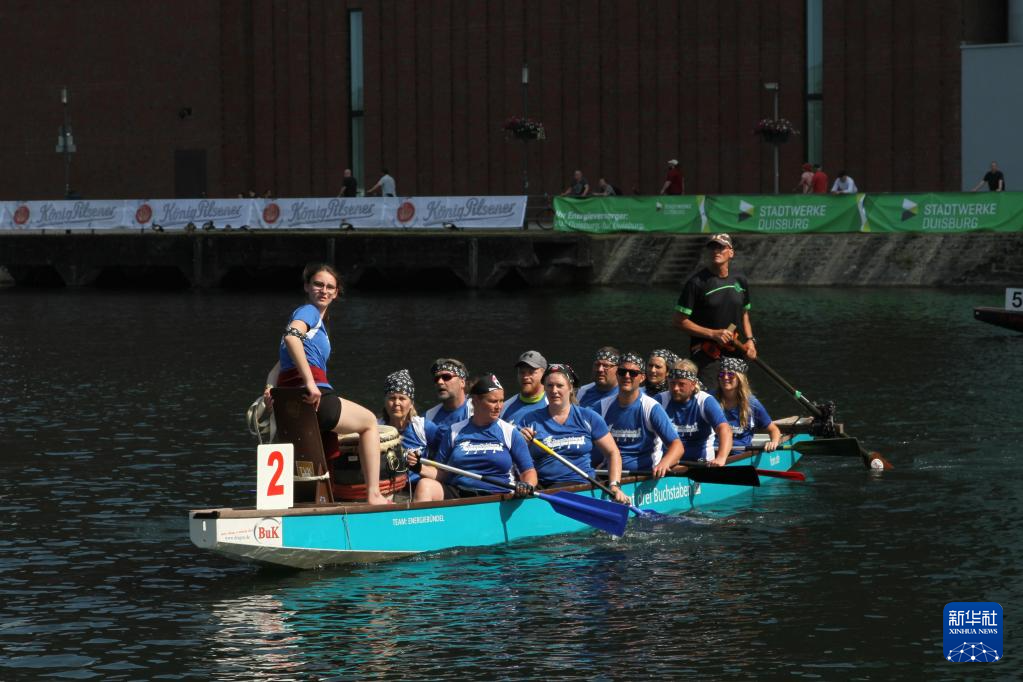 6月10日,人們在德國杜伊斯堡參加趣味龍舟賽。新華社記者 單瑋怡 攝