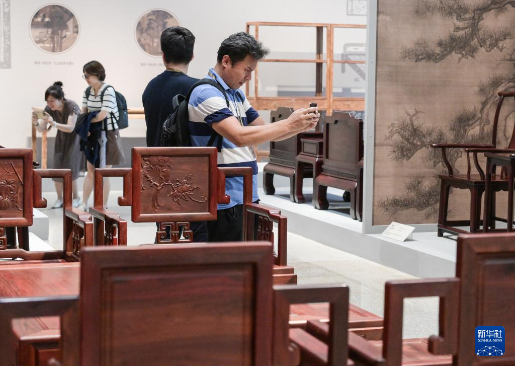 當(dāng)日,“心·傳——陳玉樹(shù)新時(shí)代古典家具藝術(shù)展”在位于北京的中國(guó)工藝美術(shù)館、中國(guó)非物質(zhì)文化遺產(chǎn)館舉辦,展出了高級(jí)工藝美術(shù)師陳玉樹(shù)近年創(chuàng)作的20套古典家具,展現(xiàn)出中國(guó)木作技藝之美。新華社記者 李賀 攝