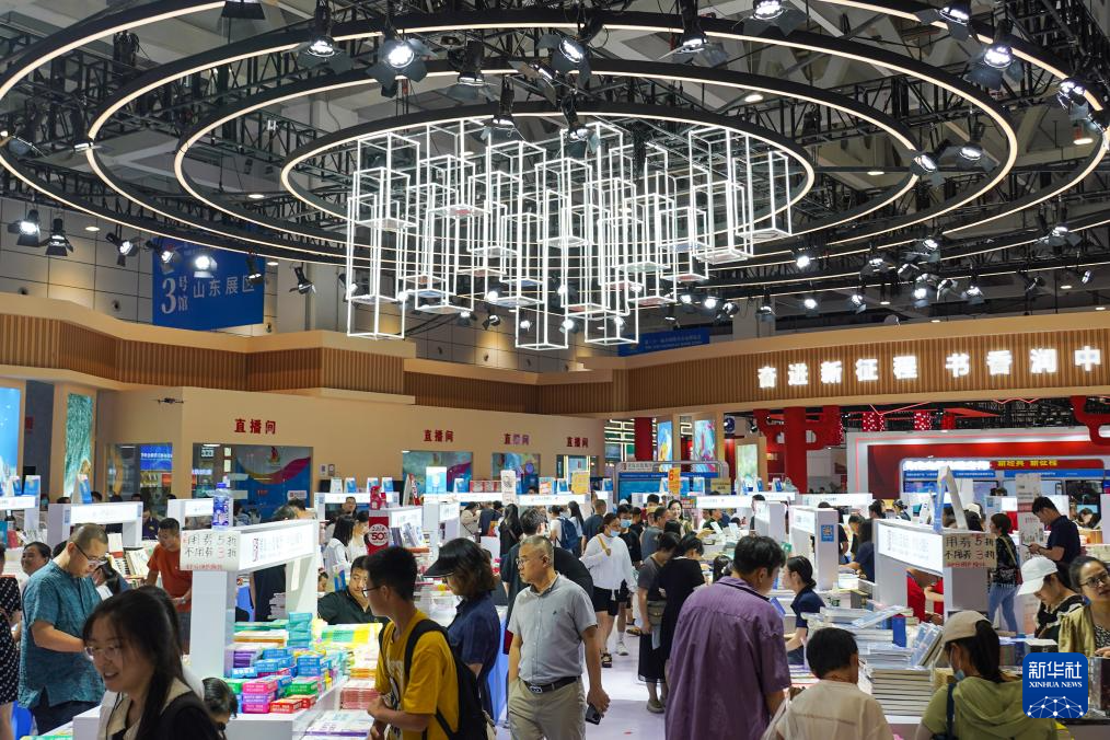 連日來,在山東濟(jì)南舉行的第31屆全國圖書交易博覽會吸引了大批讀者前來閱覽選購。本屆書博會以“奮進(jìn)新征程 書香潤中華”為主題,來自全國各?。▍^(qū)、市)和港澳臺的1700多家出版印刷發(fā)行單位參展,線上線下共展出各類出版物70多萬種。(新華社記者 朱崢 攝)