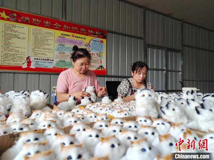 圖為工人們正在趕制萌寵系列毛絨玩具。 定陶融媒體中心供圖
