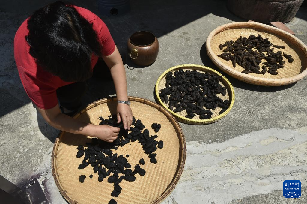 8月4日,在禹州中醫(yī)藥文化技藝傳習(xí)館,非遺項目“禹州中藥加工炮制技藝”代表性傳承人朱改蓮展示中藥材“九蒸九曬”加工技藝。