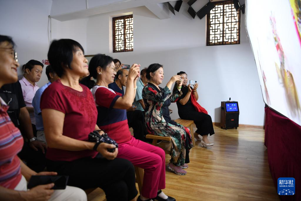 9月16日,市民在玉田縣“非遺會(huì)客廳”皮影工坊內(nèi)觀看皮影戲表演。