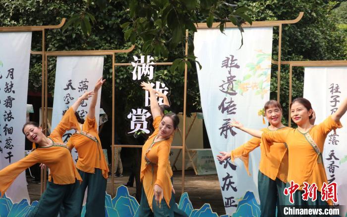 在《桂花雨》舞蹈表演中,2023“滿隴賞桂”非遺傳承活動(dòng)拉開帷幕。 王題題 攝