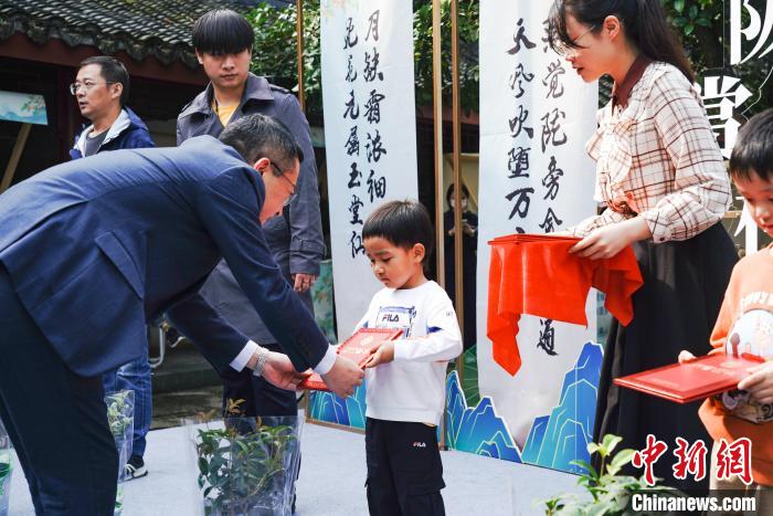 “認(rèn)領(lǐng)一顆桂花樹苗”證書頒發(fā)現(xiàn)場(chǎng)。 西湖街道 供圖