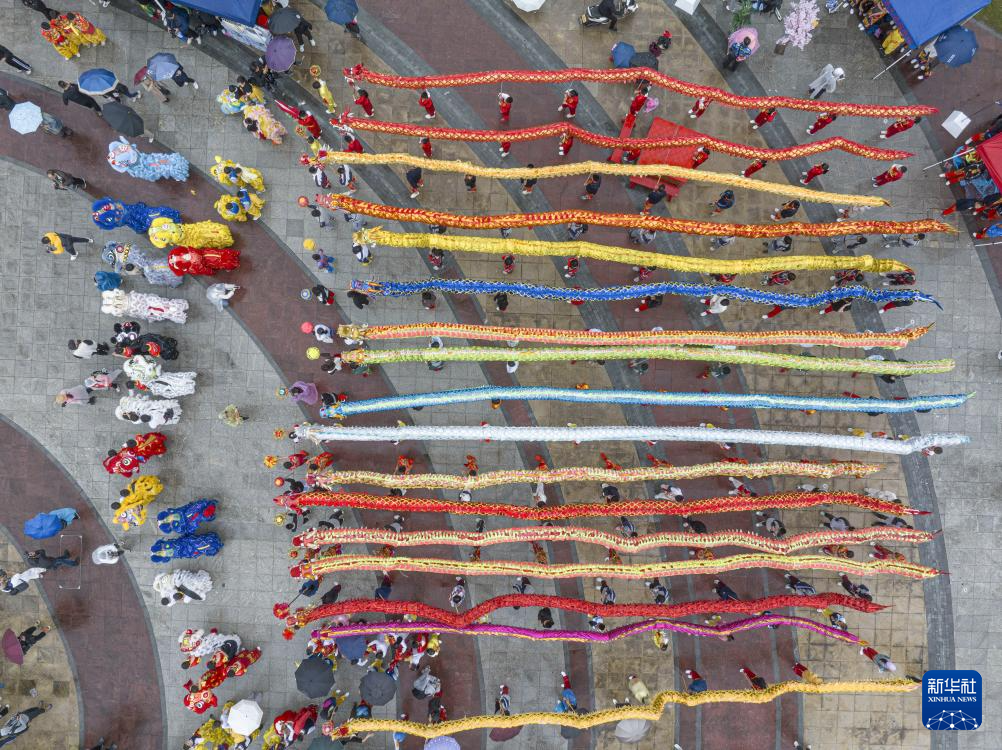 當(dāng)日,溫州市第八屆全民運(yùn)動(dòng)大會(huì)2023年舞龍舞獅精英賽在溫州市三垟濕地公園北廣場舉行。本次比賽分舞龍自選、舞獅自選、創(chuàng)意龍獅、彩帶龍等項(xiàng)目,設(shè)兒童組、青少年組和成年組三個(gè)組別,吸引來自溫州各地的舞龍舞獅隊(duì)參加。新華社發(fā)(蘇巧將攝)