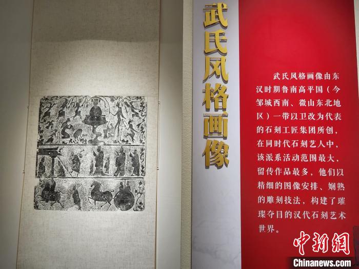 記者當(dāng)天在展覽現(xiàn)場(chǎng)了解到,武氏墓群位于今山東省濟(jì)寧市嘉祥縣城南15公里處,是一座東漢時(shí)期的家族墓地。武梁祠是其中的一座墓上石祠堂。以武梁祠為代表的武氏祠畫像,秉承三代鐘鼎玉器雕刻工藝,開啟魏晉唐宋繪畫的先河,其雕刻技藝之精妙,圖像內(nèi)容之豐富,居全國(guó)漢畫像石之首。