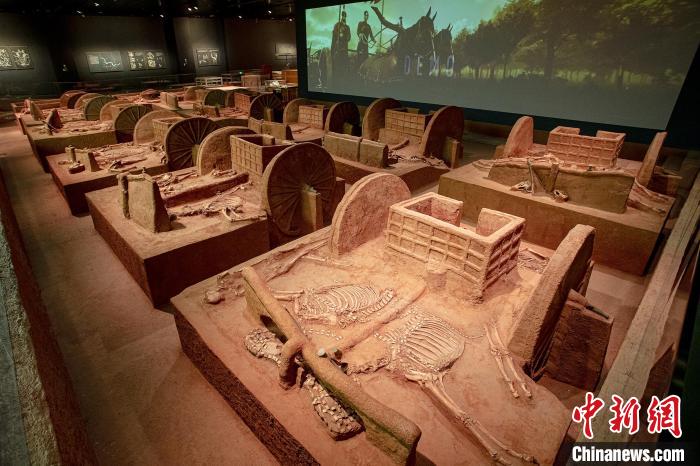 殷墟博物館新館內(nèi)的殷墟車馬遺跡展廳現(xiàn)場(chǎng)。 (中國(guó)國(guó)家文物局供圖)
