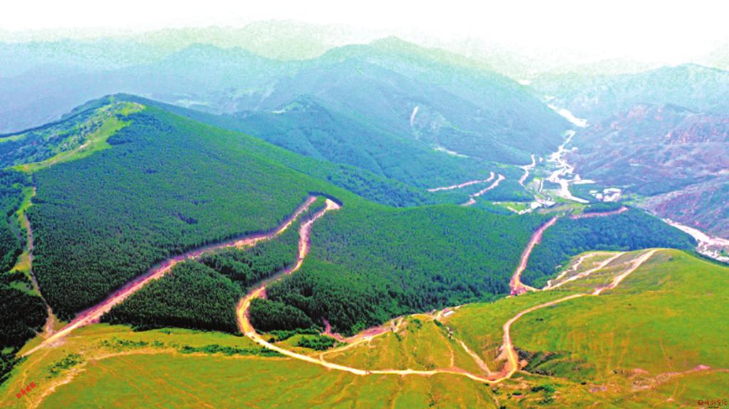建設中的太行一號旅游公路五臺山段支線暨五臺山景區(qū)東線項目鳥瞰。
