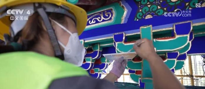 如今的北京中軸線構(gòu)建起了現(xiàn)代都市與歷史空間巧妙融合的城市景觀。北京中軸線上的前門五牌樓曾因常年風(fēng)吹日曬,導(dǎo)致油飾層開裂、失去華彩。2022年,古建油飾彩畫專家堅(jiān)持古法彩繪,對(duì)前門五牌樓進(jìn)行了翻新,令牌樓呈現(xiàn)出恢弘大氣的視覺(jué)效果。作為世界遺產(chǎn)的北京中軸線同時(shí)也是百姓日常工作生活的場(chǎng)景,這讓北京中軸線成為了“活遺產(chǎn)”。而在北京中軸線的最南端,重新復(fù)建的永定門如今已經(jīng)成為了百姓休閑和游客打卡的好去處。