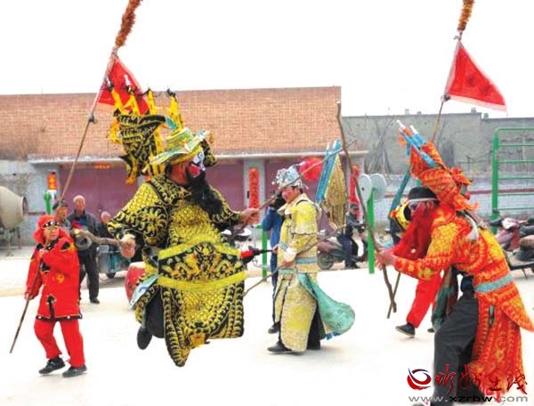 山西是民間社火之鄉(xiāng),定襄縣宏道鎮(zhèn)北社西村的大馬社火便是其中的佼佼者,也是較為獨(dú)特的一種。其特點(diǎn)是,集戲劇、舞蹈、武術(shù)、雜技、民樂(lè)和古代軍事布陣等為一體,用于民俗節(jié)慶、祭祀文化活動(dòng),整個(gè)表演過(guò)程沒(méi)有一句臺(tái)詞。據(jù)傳已有兩千多年的悠久歷史,傳承幾經(jīng)興盛和沉寂,最終得以完整地保留了下來(lái),由于場(chǎng)面宏大、生動(dòng)壯觀(guān)、審美價(jià)值較高,成為珍貴的民俗文化活化石。