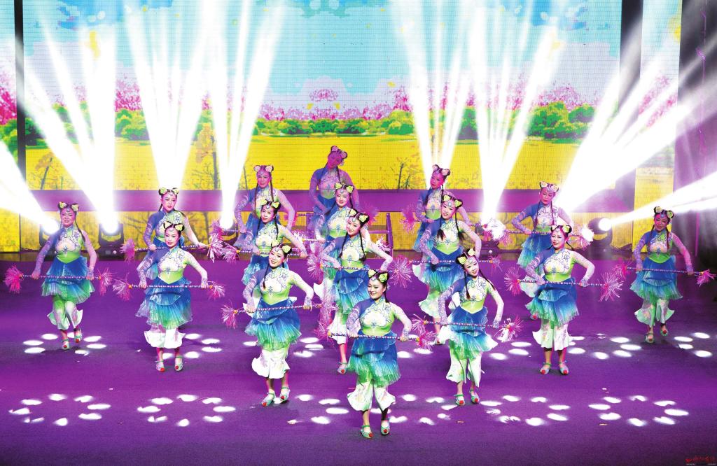 人民群眾在哪里,舞臺(tái)藝術(shù)就在哪里?!鹅櫥ㄎ璩鲂腋8琛返木巹?chuàng)團(tuán)隊(duì)在節(jié)目的動(dòng)作編排設(shè)計(jì)上注重增強(qiáng)互動(dòng)性和團(tuán)隊(duì)意識(shí)、交流意識(shí),讓更多的人在舞蹈中找到自己的角色和定位,同時(shí)也致力于推動(dòng)傳統(tǒng)原始的“霸王鞭”表演從基層區(qū)縣走進(jìn)城市角落,成為活躍在街頭的“城市健身秧歌”。